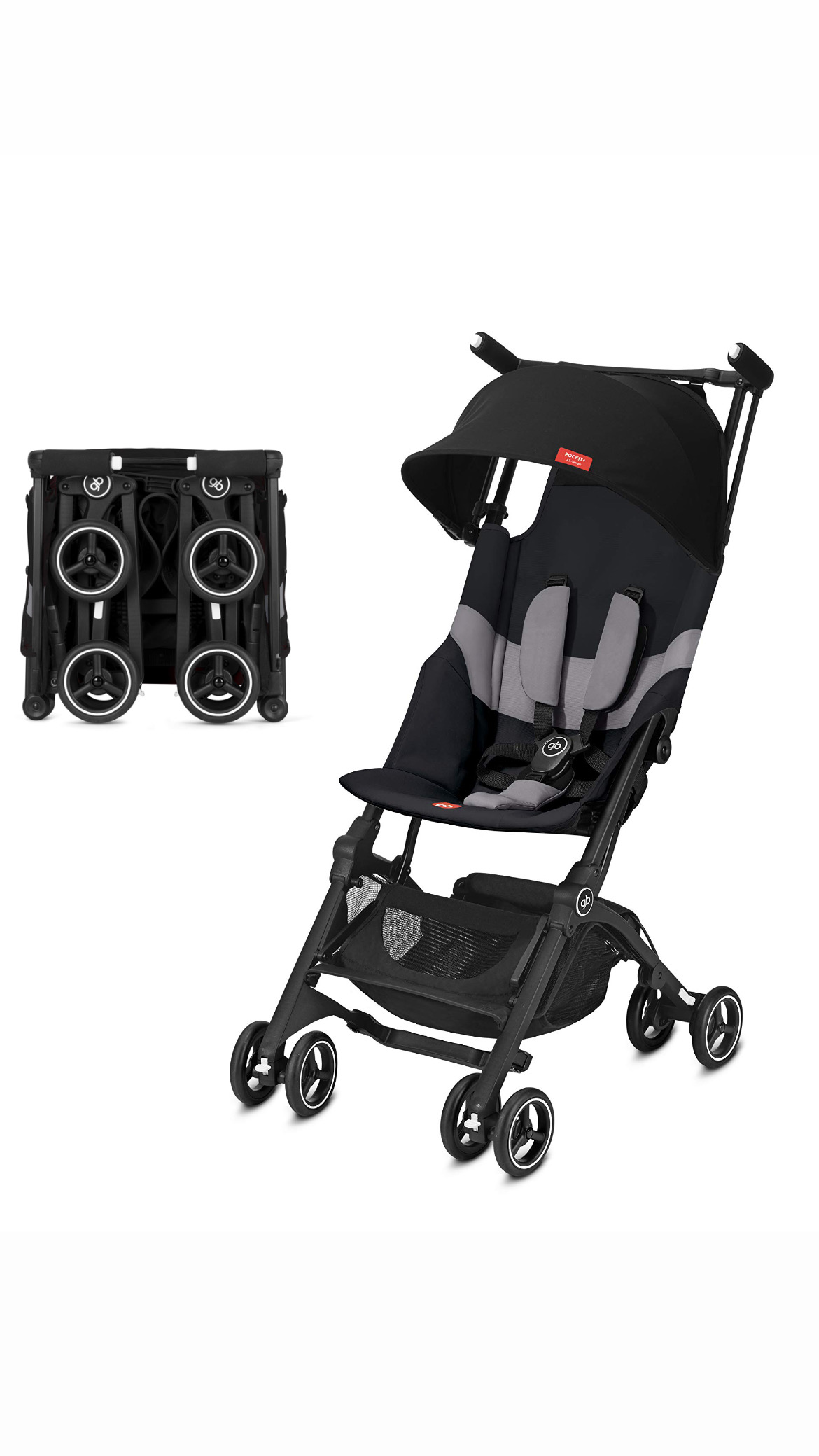 gb Pockit+ - Cochecito de viaje ligero ultra compacto con toldo y asiento reclinable en terciopelo negro
