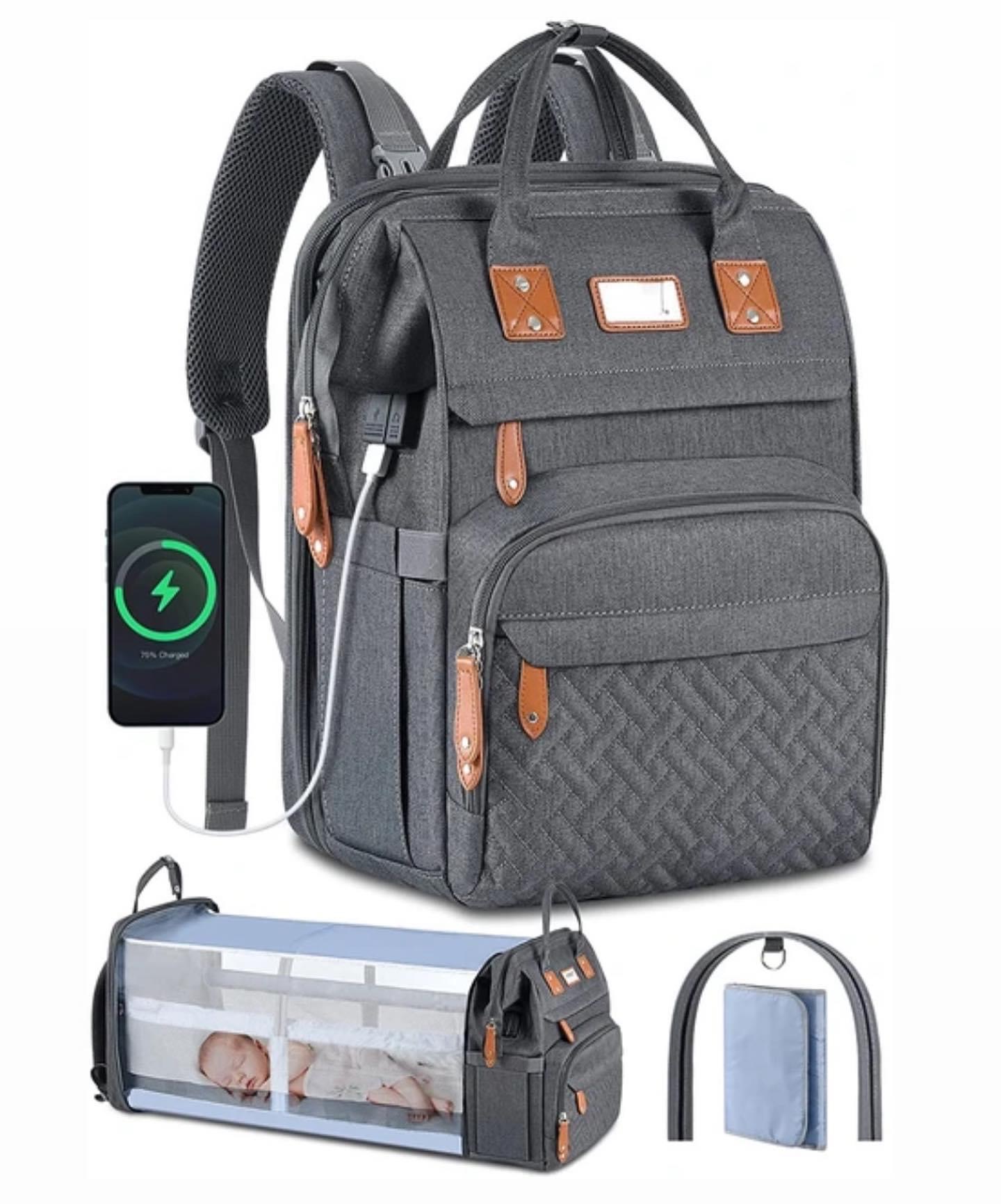 HOBEST Mochila para pañales, bolsa de pañales de viaje grande multifunción con cambiador y puerto de carga USB para mamás papás, bolsa de bebé unisex impermeable para regalos de baby shower